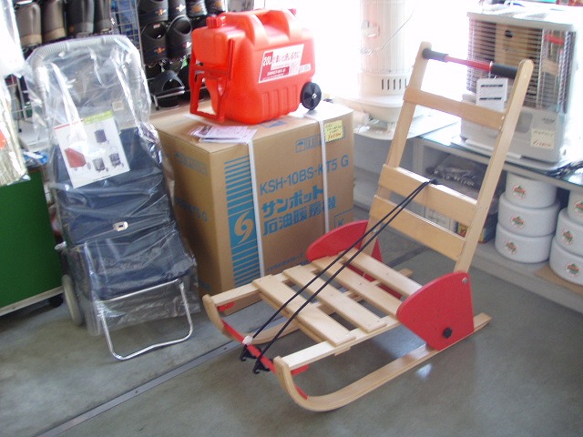 改めまして、本年もよろしくお願いいたします。 それにしても雪が少ないです、札幌。 道内はそこそこの降雪、積雪があるようですが、札幌だけ雪がよけて行っているようです。 朝起きて窓の外を見て雪が積もっていないと「雪かきしなくていいのはラクだねー」とは思うのですが、(灯油高騰のおり融雪機も動かさなくていいし)、ですが、金物屋さんとしては除雪用品がさっぱり売れず、これはこれで困ったもんで。 まあ、例年春までには帳尻は合うようになっているので、そのうちにドッカリと来るかもしれません。 ただ、ここ数年そのメリハリがくっきりしてきて、どか雪の降るのが遅くなっているようなのは気のせいか?? 昨日からの「大荒れ」天気予報が外れて、思いがけずに穏やかな大晦日です。 お子さんの雪遊びやお買い物という用途で昔ながらの木のそりは毎年コンスタントにお買い求めの方がいらっしゃいました。でも、今年の新製品は一味違います。 札幌市と企業が共同開発した「札幌スタイルデザインプロジェクト」のひとつ。 http://web.city.sapporo.jp/sapporo-style/0712/sori.html まず折りたたみ式が新しい。従来のそりはかさ高く収納が問題でしたが、これは折りたたんで車のトランクにも収納可能です。それにハンドル部の角度が2段階に調整できますので、お子さんやお年寄りも快適にお使いいただけます。 特に夏の間はショッピングカートをお使いになっていた方には冬の間もお買い物やお散歩に気軽にお出かけになれると思います。 店頭価格 ¥7800円 むか~しに訪れたことのあるノルウェーでは、お買い物用にこんなタイプの木のそりの足の部分が後ろに長く伸ばしてあって片足でそこに乗り、もう片足で漕ぐものがあり、多くの方が利用していました。面白くて1台購入してしょってきましたが、いかんせん日本の交通事情では使い勝手がいまいちでお蔵入り。近々ご紹介してみようかな。